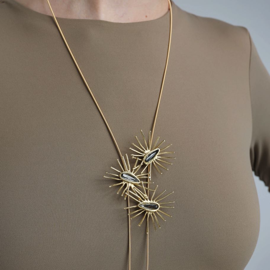Collier van verguld brons. Het verschuifbare element heeft swarovski crystallen
