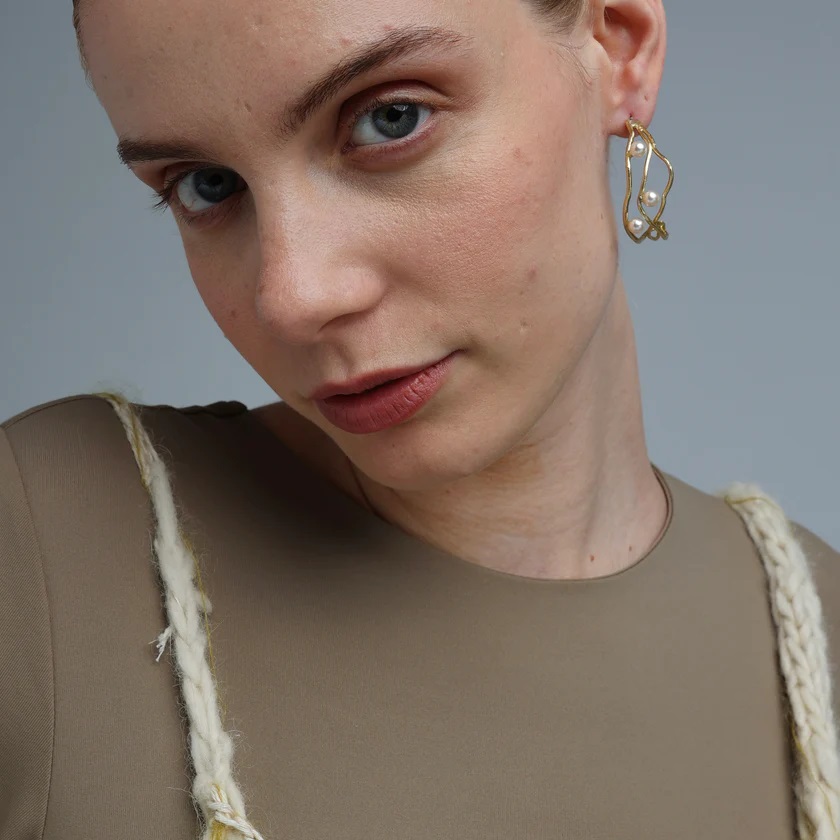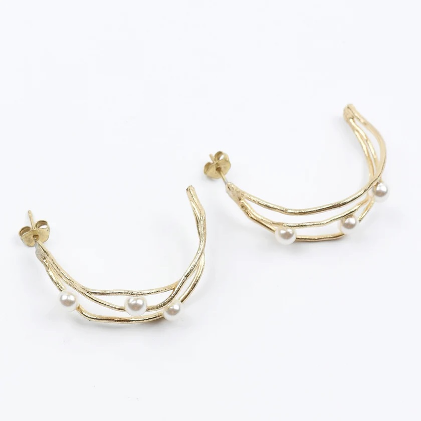 Deze oorringen zijn handgemaakt van verguld brons en voorzien van glasparels. De oorringen zijn nikkelvrij dus helemaal allergievrij.