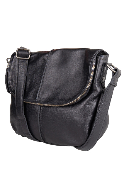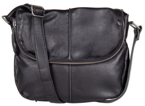 Crossover tas van stevig Ox leer met opvallende leren verticale naad.