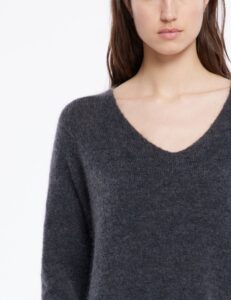 Deze V-hals trui is extra lang en ultrazacht. Dankzij de luxueuze mix van mohair en merinowol ontstaat een wolkachtige textuur met comfortabele stretch. De losse pasvorm en de fijne details maken deze trui zowel stijlvol als cozy.