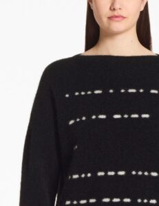 Deze superkid mohair trui voelt zo licht en zacht als een wolk. Het bijzondere zit ’m in het design: een morsecode-intarsia – een breitechniek waarbij motieven direct in de stof worden verwerkt – onthult de verborgen boodschap “take care”. Een stijlvolle herinnering om goed voor jezelf te zorgen.